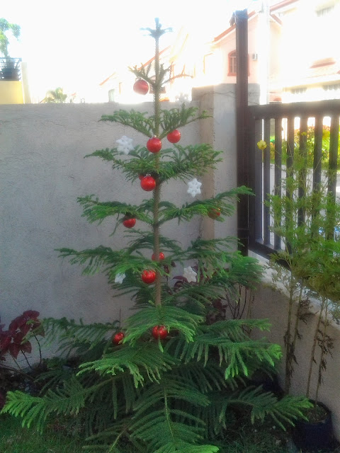 Deletemejo kulang pa sa decor yang Arocaria na yan. dapat daw may Christmas lights - pero scary kasi maglagay ng christmas lights sa labas dahil sa change of weather (paulan ulan :().